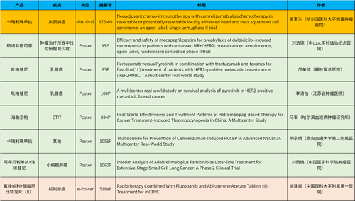 在头颈肿瘤、乳腺癌、肺癌、前列腺癌等多个疾病领域,卡瑞利珠单抗、阿得贝利单抗、吡咯替尼、氟唑帕利、法米替尼、醋酸阿比特龙片(II)等抗肿瘤新药相关研究一共入选了1项简短口头报告、4项壁报展示和1项电子壁报,彰显了豪门国际医药强劲的研发实力。
